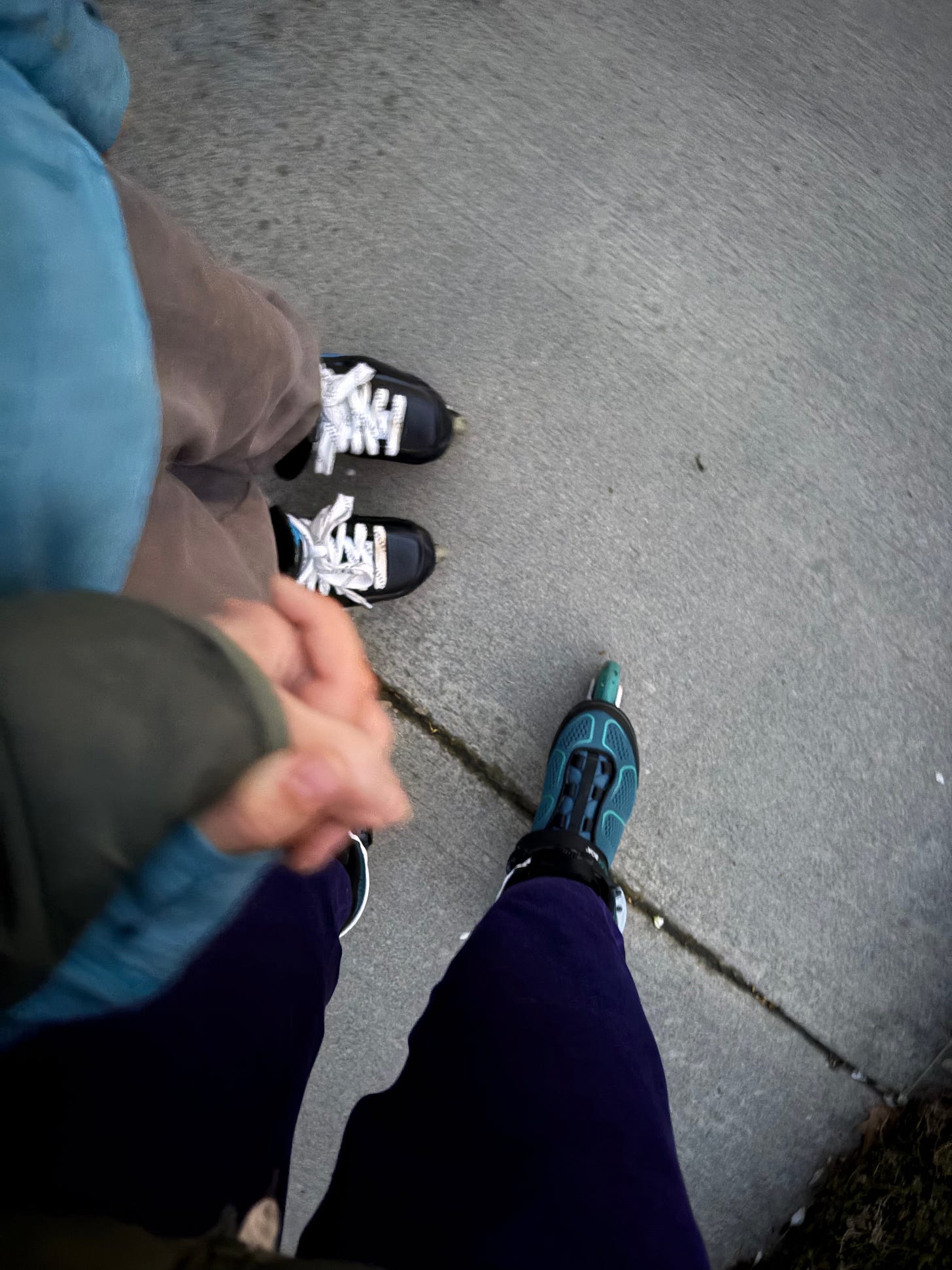 We went outside and started circling the block, over and over again. It was simple, nothing big or planned, just the two of us moving through the night. Right away I could tell it didn’t feel as natural as it used to, and I had to slow down and find my balance instead of just moving without thinking the way I once did. At one point I even thought to myself that I should probably invest in wrist guards and knee pads.